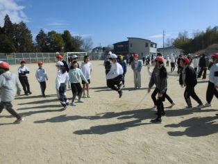 | 体育委員主催の 大繩(8の字とび)記録会 がありました 今日は1年生と6年生が挑戦しました。 |