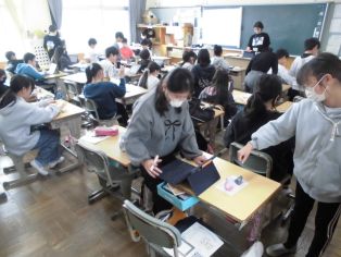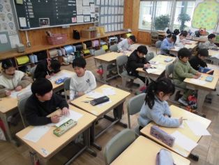 | 2月25日(水) 1年生 来週の「ありがとうの会」にむけて、お礼の手紙をかきました。 |