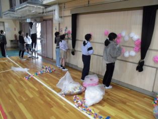 | 5年生 明日の6年生を送る会の会場準備をしました。 |