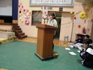 | 思い出のスライドを見た後 6年生からも在校生へのメッセージと歌の出し物がありました。 |