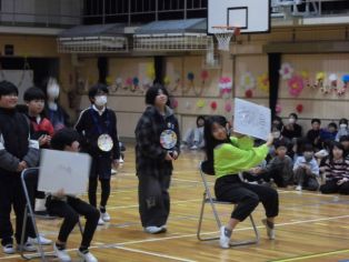 | 3月3日(火) 今年度最後のたてわり遊びがありました。 6年生が内容を考え、ゲームなどをしてみんなで楽しむことができました。 |