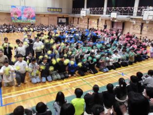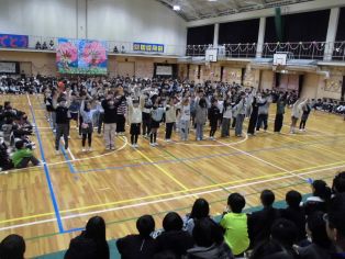 | 最後に「世界に一つだけの花」を全校で歌いました 退場の様子です |