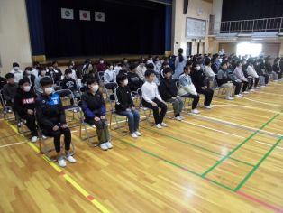 | 2月24日(火) 全校集会がありました ・校長先生の話 ・表彰 ・運営委員会からあいさつ運動の連絡 ・5年生から6年生を送る会についての話 |