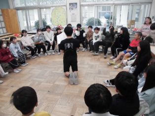 | 各学年の感謝の気持ちを込めたダンスや呼びかけなどの出し物がありました。 3年生 2年生 |