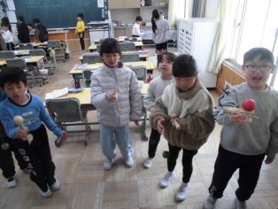 | 2月13日(金) 1年生 国語 書写 ていねいに字を書こう 生活科 けん玉マスターになろう |