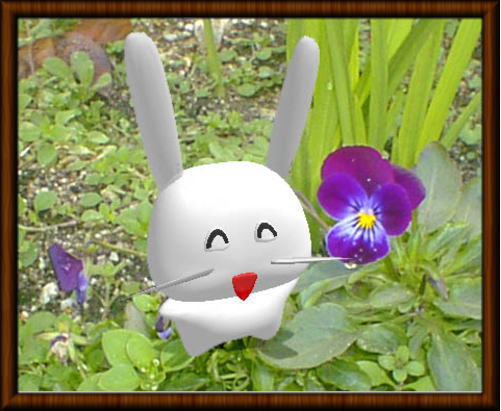 | みののちゃんのキャラクター「うさうさ」を3DCG化した物を 家の庭の写真と合成したものです 2000年12月の約1ヶ月間、ハードディスクのクラッシュなどで CGをまともに使えなくなる「つるまる2000年問題」が発生しましたが 無事、PC復活をしたのでそのお祝いに買った「六角大王スーパー2」という 簡単お手軽に3DCGが作れるソフトで最初に作ったCGです モデリングデータでもう少し「うさうさ」と遊んでみようと思っています。 |