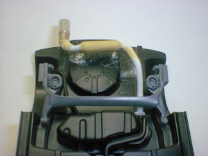 実際つけてリヤをみたところ プラ棒曲げてちょいちょいとは行かず 位置を合わせてうまく下げるのに かなり苦労しました。 曲げたプラ棒はポキポキ折れるし〜 |
