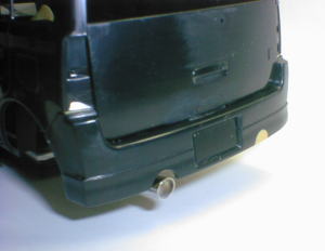 | ニセモンうそっこマフラー完成! 本当なら、プロペラシャフトとリアのデフ おまけにサスも変えるべきところですが、 見えないシャーシは今回パス 腕に自信がついたらチャレンジしましょう。 |