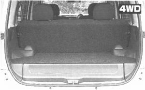 | ○4WDの室内の違い 4WD仕様の違いでマフラー以外に室内にも違いがある事が判りました。 1.リアシートが、2WDは6:4分割可倒式に対し4WDは1分割可倒式である事 2.4WDのラゲッジスペースの高さが20センチも高い事 |