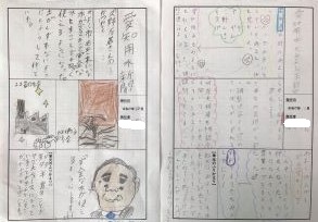 国語科「組み立てて書こう」の学習では、文章を書くときに、はじめ、中、終わりの役割を学び、伝えたいことを分かりやすく組み立てて書くことをまなびました。それを生かして、お礼の手紙を書きました。 |
