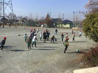 運動場では、ドッジボールやサッカー、鬼ごっこ、遊具などで元気に遊ぶ子どもたちの姿がありました。中には額に汗を光らせている子もいました。 |