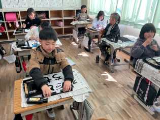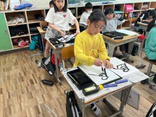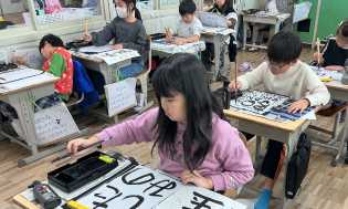 初めて筆を握ってから、はや1年が過ぎようとしています。今日は、「書で遊ぼう」と題して、思い思いの字を書きました。お手本がないので、失敗はないはずなのですが、「失敗しちゃった・・・」と落ち込む子もいましたが、それぞれの個性あふれる作品が出来上がりました。