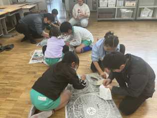 図画工作科「版画」の学習では、自画像に取り組みました。自分の顔をスケッチして、彫刻刀で彫り進め、白色と黒色で表現しました。特徴をつかみ、とても上手に仕上がりました。