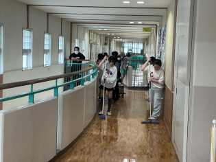 普段は手が届かないのであきらめていた窓の高いところや、昇降口の溝の中、数えきれないくらい歩いた廊下など、6年間の思い出に浸りながら隅々までピカピカにしていました♪