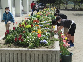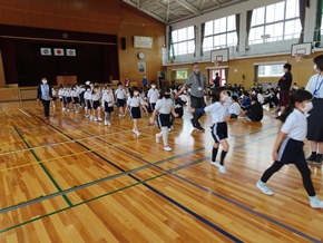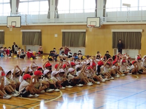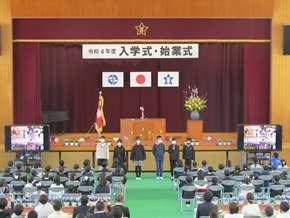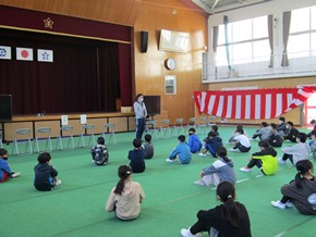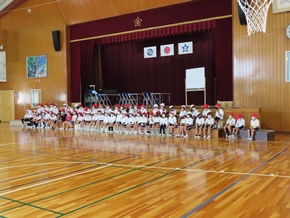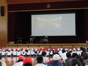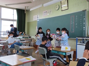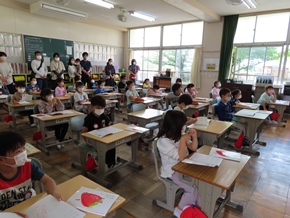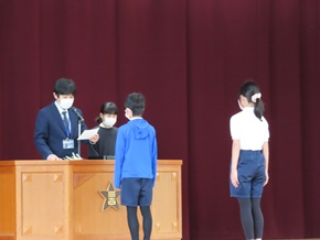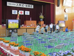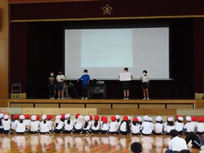 | 4月22日(金) 1年生をむかえる会が行われました。1・5・6年生は体育館で、2~4年生は教室で、リモートによる参加となりました。花アーチによる入場、学校紹介の劇、各学年からのビデオレター、三吉小〇×クイズ、じゃんけんゲームなど、楽しい内容が盛りだくさんでした。1年生の楽しそうな笑い声と笑顔、それを見守る2~6年生の優しい笑顔があふれる会となりました。 |