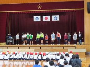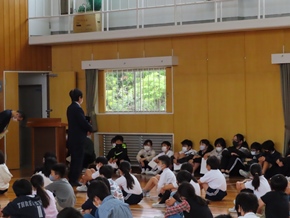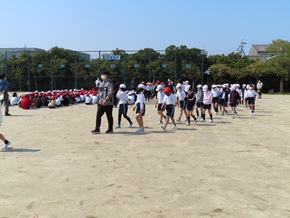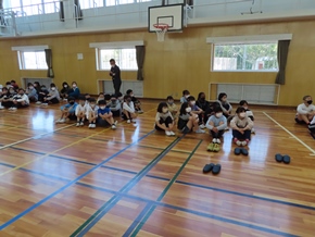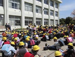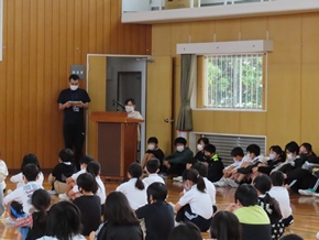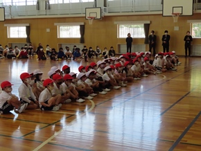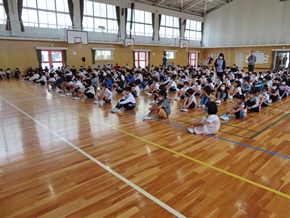 | 4月20日(水) 今年度初めての避難訓練。事前指導を受けて、1~6年生は「おはしも」を守りながら、避難経路を利用して避難しました。校長先生の話を聞く姿勢や、終わった後の教室移動も、静かにしようと意識して取り組んでいる様子がうかがえました。 |