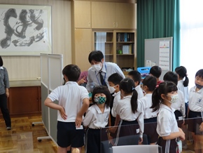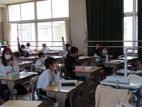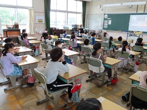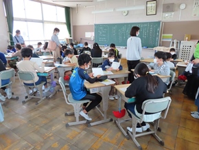 | 4月23日(土) 今年度初めての授業参観が行われました。密を避けるため、保護者の方々には1・3時間目を地区別に分けて、参観していただきました。はりきっている子どもたち、そしてそれを温かく見守る保護者の方々の様子が見られました。 |