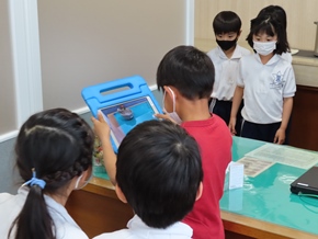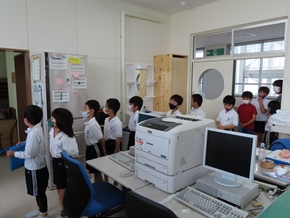 | 4月25日(月) 2年生の学校探検の様子です。子どもたちにとって、校長室や職員室は気になる空間のようで、校長先生に熱心に話しかけたり、タブレットで画像を撮ったりしていました。 |