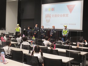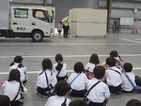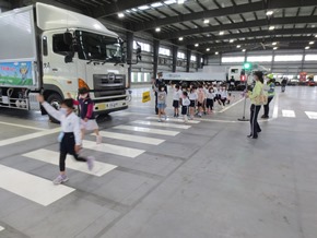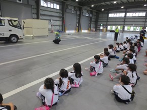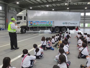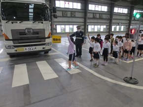| 5月9日(月) 初めての校外学習に出かけた1年生の様子です。トラック研修センターで、交通安全教室が行われました。そこでは、みよし市の防災安全課の方々や交通指導員さんから、車に潜む危険性や、安全のために気をつけたいことや心がけたいことなどを学びました。どの子も真剣に聞き、実習にも集中して取り組みました。 |