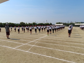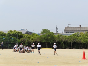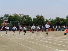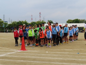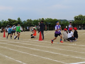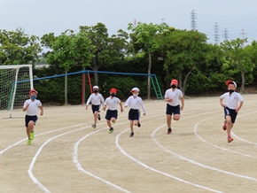 | 5月11日(水) 3・4年生の徒競走の練習の様子です。入退場の隊形や進路方向の確認をしたり、実際に同じレースの仲間たちと走って着順後の並び方を確認したりしました。真剣に走っている姿が印象的でした。 |