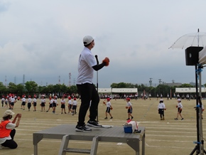 | 5月19日(木) 今日は、運動会予行練習が行われました。自分の役割や当日の流れ、動き等を確認するために、本番通りに進めました。どの子も一生懸命、演技や徒競走に取り組んでいました。6年生は、自分の役割を間違えなく進められるように、意識を高くもって臨んでいました。おかげで予定通り終えることができました。当日が楽しみです。 |