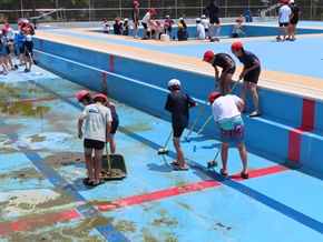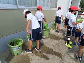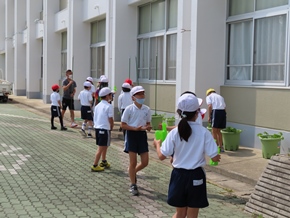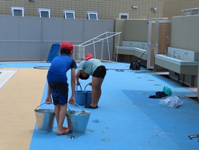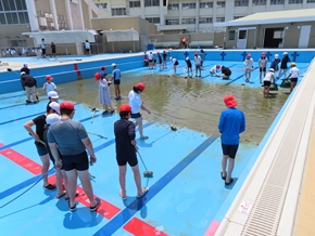 | 5月24日(火) プール開きに向け、高学年によるプール清掃が行われました。5年生はプールサイドを、6年生はプール内を時間いっぱいまできれいにしました。自ら進んで活動する姿に、高学年の心意気が感じられました。 |