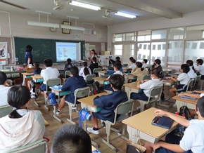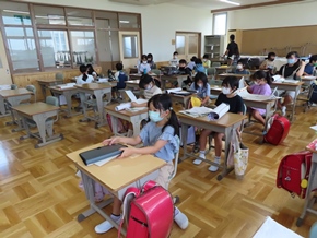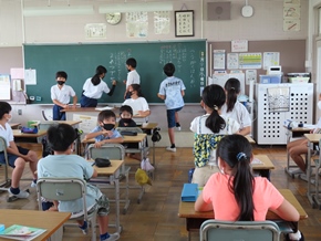 | 7月20日(水)① リモートによる夏休み前集会の様子です。2・3・5年生の代表児童による発表があり、これまでがんばってきたことや夏休みの目標について、自分の思いを堂々と述べていました。また、表彰も行われました。次の時間は通学班会が行われ、これまでの登下校を振り返ったり、夏休みの生活で心がけたいことを確認したりしました。いよいよ明日から夏休みです。充実した時間を過ごしてくださいね。 |