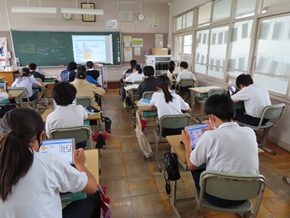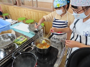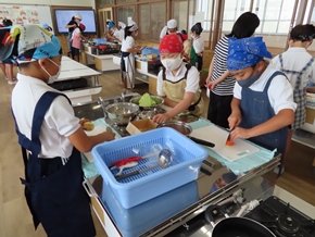 | 7月5日(火) 今日は5年生が調理実習でポテトサラダをつくりました。野菜の皮むきをピーラーか包丁でむいていましたが、中には包丁の角で上手にじゃがいもの芽を取り除いている子も見られました。また、6年生はプログラミング学習に熱心に取り組んでいました。器用にタブレットを使いこなしている姿が多く見られました。 |