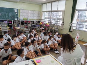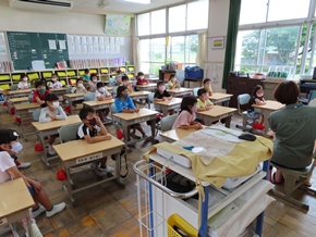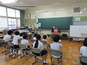 | 7月14日(木) 1~3年生対象の読み聞かせが行われました。どの教室も、ものがたりの世界に引き込まれている子が多く見られました。 |