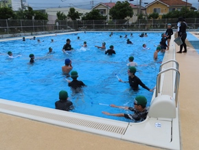 | 7月15日(金) 4年生のプールの様子です。今日が最後ということで、後半は道具を使ったりして、楽しく活動していました。子どもたちの生き生きとした表情に、心が和みました。 |