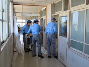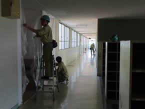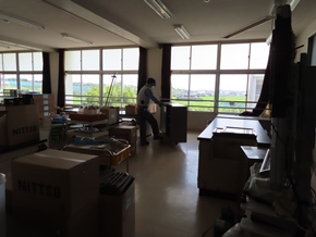 | 7月20日(水)③ 午後から引越作業が行われ、明日からの本格的な工事に向けて、準備が始まりました。暑い中、三吉小学校の改修工事に携わるたくさんの方々が、本当に一生懸命働いてくださっています。ありがとうございます。これからよろしくお願いします。 |