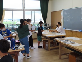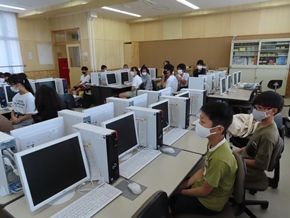 | 8月19日(金) 課題提出日2日目の様子です。それぞれの教室では、先生の話を真剣に聞いたり、次の登校日の予定を書き込んだり、時間の合間には久しぶりに会う友だちとの会話に花を咲かせたりしていました。 |