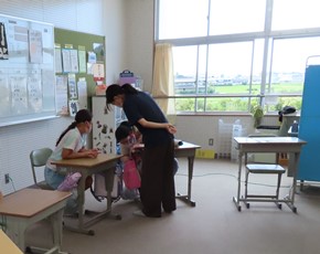 | 8月18日(木) 今日は課題提出日初日です。久しぶりに、学校は子どもたちの元気な声と笑顔にあふれました。教室棟が改修工事のため、特別教室にそれぞれの学年が分かれて課題などの確認を行いました。改修工事の方も順調に進んでいるようです。夏休みもあと少しですが、充実した時間を過ごしてください。 |