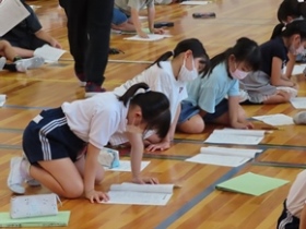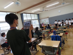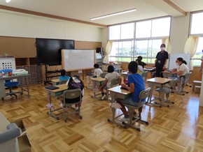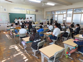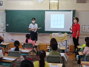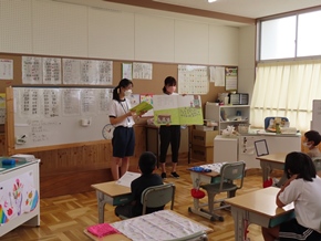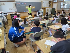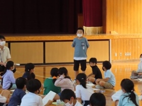 | 9月26日(月) 今日から後期の教育実習が始まりました。2人の学生さんが学んでいます。また、1年生が6年生の前で「大きなかぶ」の朗読を披露していました。一生懸命気持ちを込めて読んでいる1年生と、それを優しく見守る6年生の姿が見られ、とても温かい空間となっていました。 |