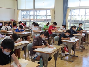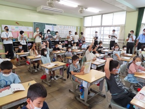 | 9月5日(月) 夏休みが終わり、今日から三吉小学校の生活が再開されました。久しぶりに校舎に活気が戻り、微笑ましく感じました。 |