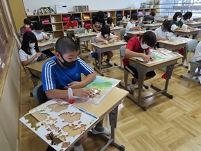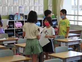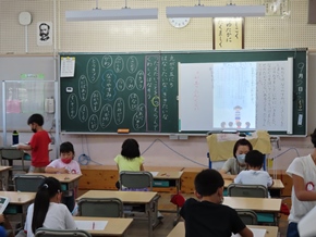 | 9月28日(水) 2年生で、国語科の研究授業がありました。物語の文章中のことばから、登場人物の気持ちを考えて発表したり、仲間と役割を分担して音読したりしました。 |