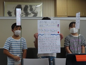 | 9月15日(木) リモートによるおはよう集会が行われました。校長先生のお話、福祉・広報委員会と飼育委員会、児童会からのキャンペーンの呼びかけがありました。三吉っ子全員で協力して、よりよい活動にしていきたいですね。 |