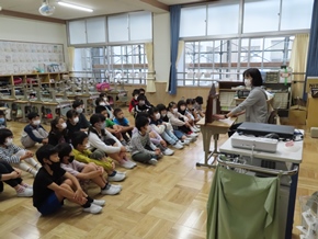 | 10月13日(木) 1~3年生の教室で、ボランティアの方々による読み聞かせが行われました。真剣に聞き入っている子が多く見られました。 |