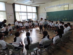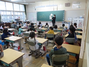 | 10月11日(火) 今日から、後期の生活が始まりました。始業式の中で、校長先生のお話や児童代表の発表、教頭先生からのお話があり、後期の生活もがんばろうと気を引き締めている様子がうかがえました。また、教育実習生による研究授業が行われ、児童たちが意欲的に取り組んでいました。 |