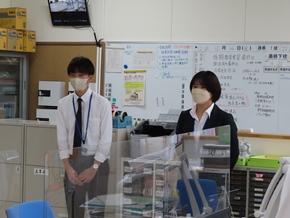 | 10月26日(水)② 今日から、南中学校の3人の生徒さんが職場体験学習に来ています。初日から、意欲的に三吉っ子と関わっています。三日間、実のある学習になることを期待しています。 |