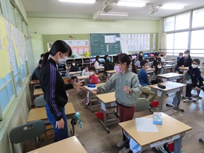 | 10月20日(木) 異学年交流のふれあいどんぐりタイムがありました。今日のペアは、1・4年生、3・5年生、2・6年生で、じゃんけんリレーを行いました。どの教室からも、楽しそうな笑い声が聞こえてきました。 |