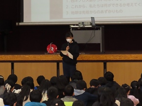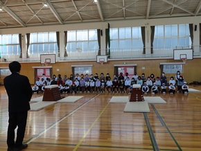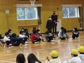 | 11月2日(水) 今日は、1年生と4年生がお互いの学芸会の演技を披露し合いました。積極的に感想を述べている姿が微笑ましく感じられました。 |