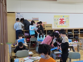 | 11月15日(火) 改修工事が次の段階に入り、今日から元の教室に戻った学級と特別教室に移った学級がありました。引越後の荷物の準備や片付けに、朝から取り組んでいる教室も見られました。 |
