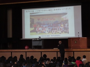 | 11月24日(木) オイスカ交流集会が行われました。みよし市長はじめ、多くの来賓の方々にお越しいただきました。感謝状の贈呈式、オイスカみよしの取り組みの紹介などが行われ、最後に児童代表がお礼を述べました。 |