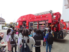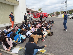 | 11月28日(月) 3年生が校外学習で、尾三消防本部に出かけました。DVDを視聴した後、車両や施設内を見学させていただきました。普段見られない貴重なものがたくさんあり、目を輝かせながら説明を聞いたり、一生懸命メモを取ったり、質問をしたりして、多くのことを学ぶことができました。 |