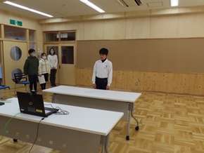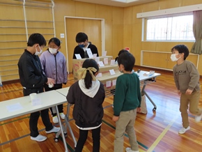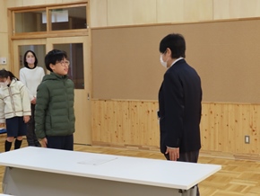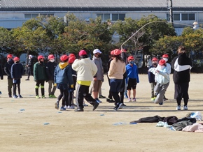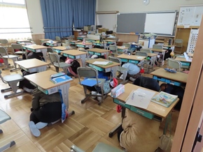 | 1月13日(金) 放課の時間での避難訓練が行われました。今日はいつもと違い、事前に行う時間を知らせない取り組みでしたが、子どもたちは落ち着いた様子で、「おはしも」のルールを心がけながら活動しました。最後に、けが人を見つけたときの対応について話を聞きました。 |