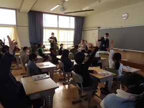 | 1月18日(水) 5時間目に、4年1組の教室で「金色の魚」の道徳の研究授業が行われました。たくさんの先生方が見ている中でもおじけることなく積極的に挙手したり、発言したりする姿が見られました。 |