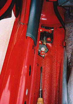 助手席側上部は、幌骨を固定するボルトと共締めされます。