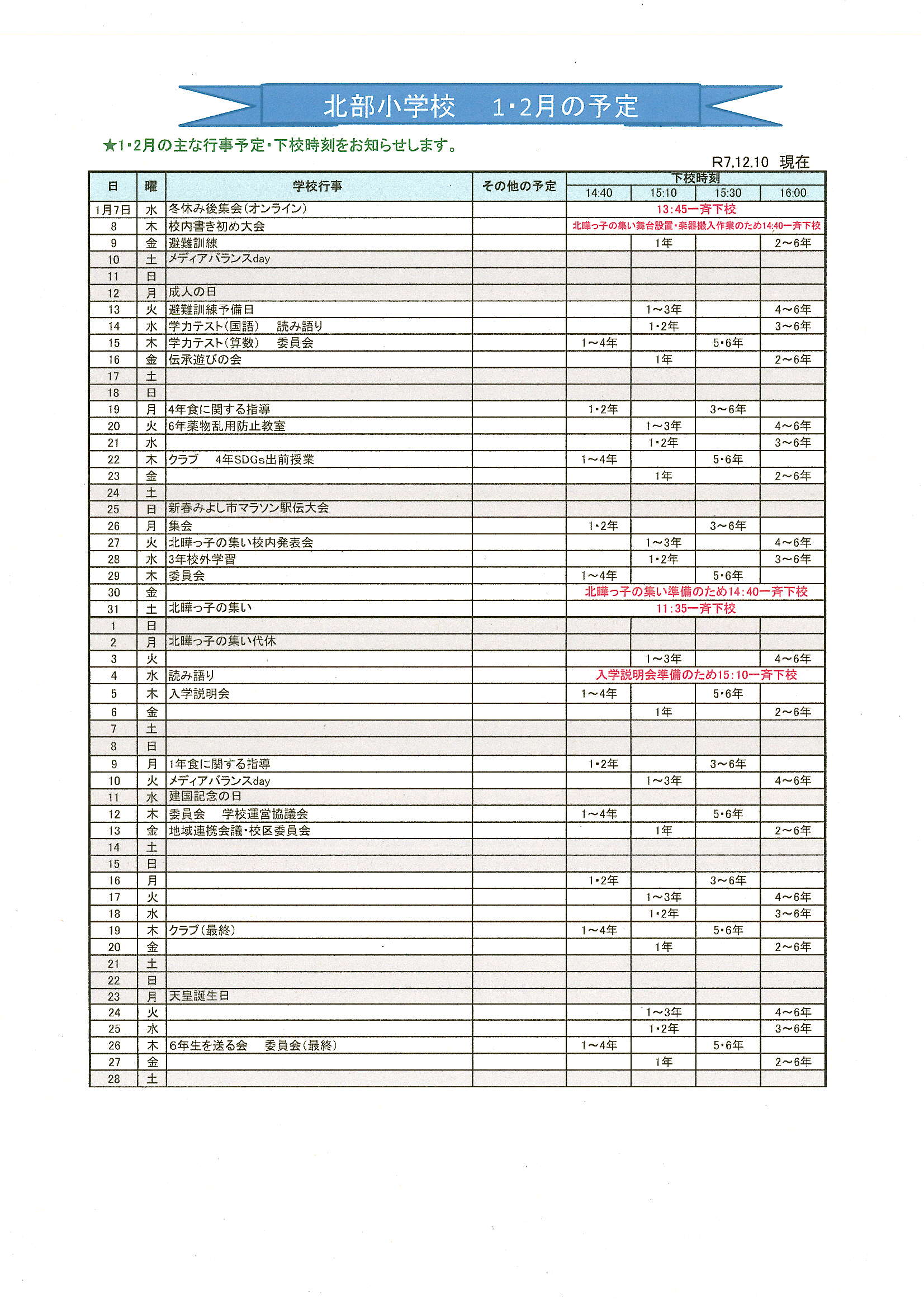 | ※各種行事につきましては、日程の変更や中止・延期する場合があります。その際は随時お知らせいたします。 |