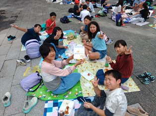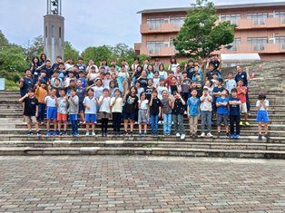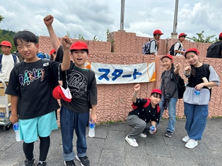 | 旭高原に到着しました。入所式を行い、集合写真を撮影しました。これから昼食を食べます。 |
